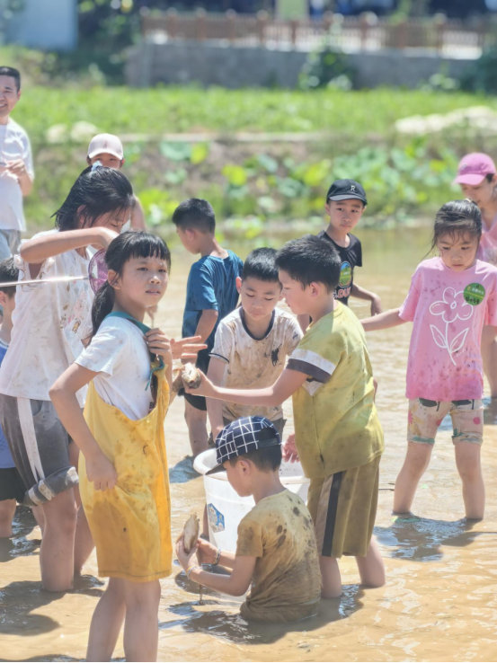 活动现场,父母们耐心地指导孩子们如何将秧苗插入泥土中,孩子们也学得不亦乐乎,在欢声笑语中展现了亲子之间的深厚情感与默契配合。此外,还开展了“浑水摸鱼“自然手工”“蚂蚁课堂”等趣味游戏,让家长和孩子们在轻松愉快的氛围中共同学习、共同成长。通过共同劳作,亲子间的感情得到了进一步加深。