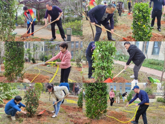 植树现场,全体人员精神抖擞,充分发挥特别能吃苦、特别能奉献的精神,分工协调、通力合作,干的热火朝天,有条不紊地完成挖坑、栽树、施肥、浇水培土等各项工作。经过近两个小时的共同努力,成功种植了20余棵新树,完成了基地内现有果树的施肥、锄草工作,为 2024年春天增添了生机和活力。