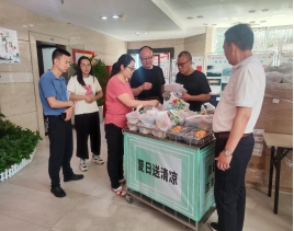 深感干部职工们的辛勤付出和无私奉献,院党委特此发起了“防暑降温,服务一线”的关怀行动。为了响应这一号召,院工会与院团委迅速行动,共同策划并开展了我院精神文明建设中的一项特别活动——“夏日送清凉”。这项活动旨在向在高温环境下坚守岗位的干部职工们送去一份夏日的慰藉和关怀。
