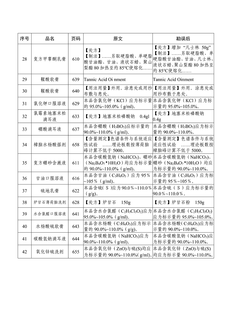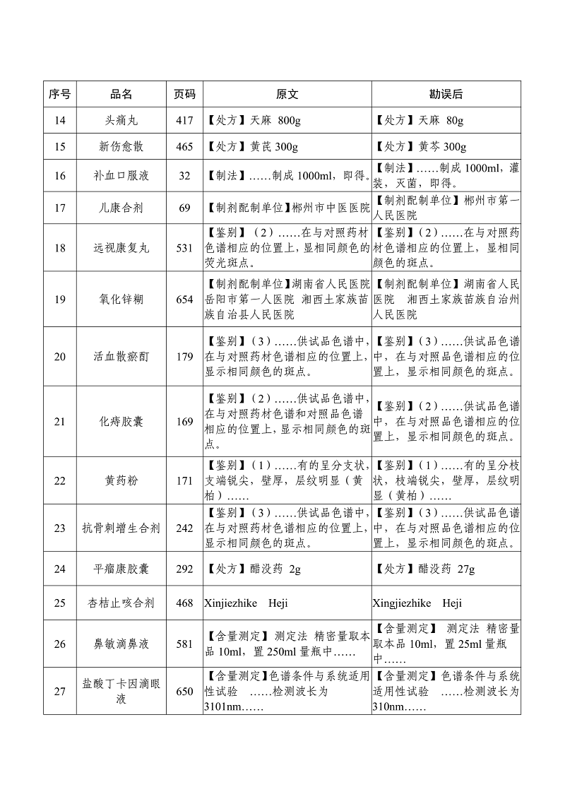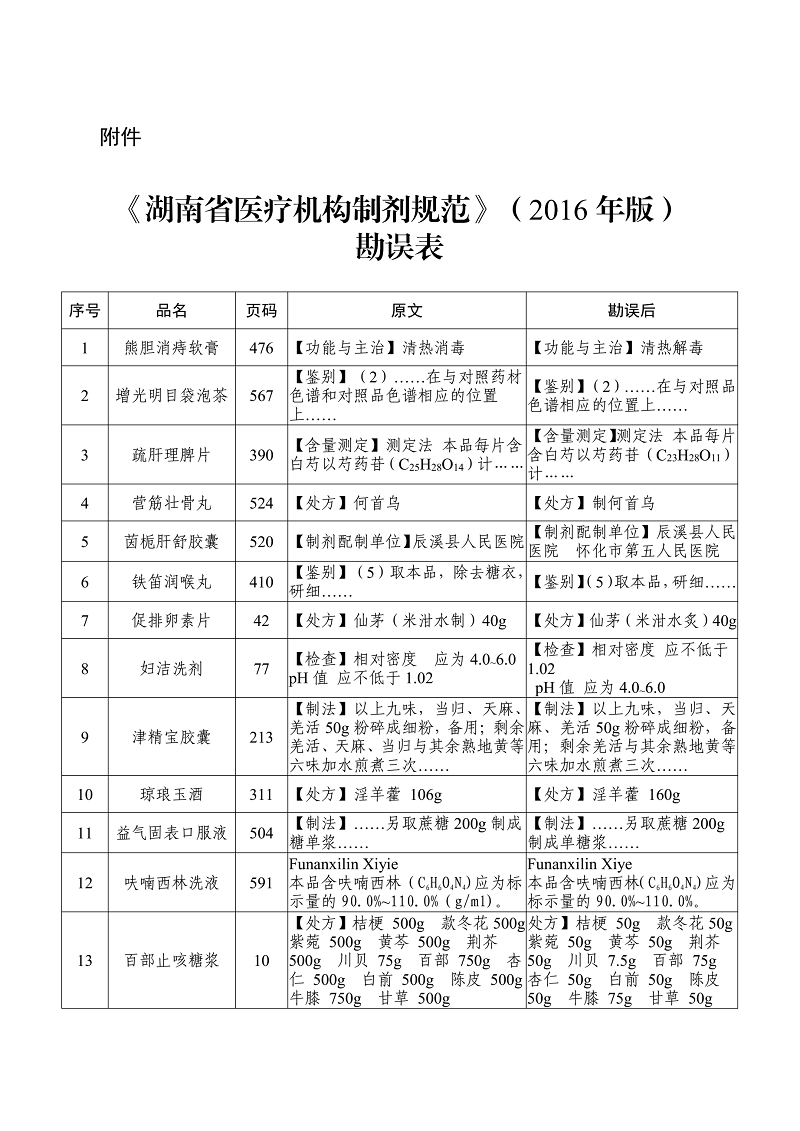 附件:《湖南省医疗机构制剂规范》(2016年版)勘误表
