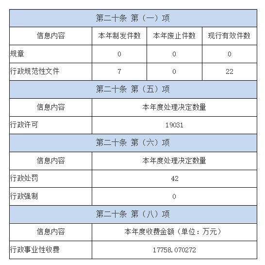 (一)主动公开情况。按照《条例》要求,2021年,省局积极运用政府网站与政务新媒体渠道对药品监管工作行政法规、规范性文件、机构概况、行政许可事项、行政处罚、预算决算、监督检查等内容进行了主动公开。截至12月31日,在门户网站公开各类信息共计2079条,其中概况类信息4条,信息公开目录信息204条,网站年度总浏览量达256.5万人次。在“湖南药品监管”微信公众号推送信息稿件共计661条,订阅人数14943人,全年阅读量达10.3万人次。在湖南省统一互动交流平台和湖南省互联网+政务服务一体化平台受理并答复药品监管领域相关咨询办件共计363件。