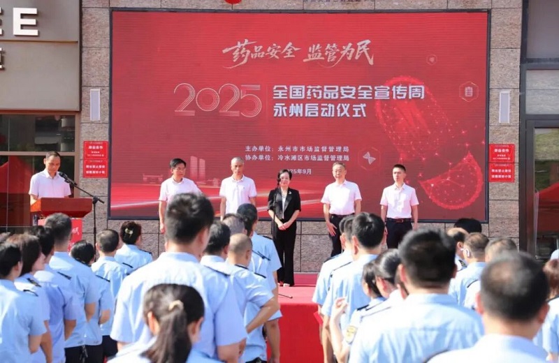 9月1日,2025年“全国药品安全宣传周”永州启动仪式在冷水滩举行,市人民政府副市长周云玲出席并宣布仪式启动,市人民政府副秘书长邓海波主持,冷水滩区副区长唐勇军致辞,药品、医疗器械、化妆品生产经营使用单位代表作表态发言,市市场监督管理局党组书记、局长艾克海讲话。
